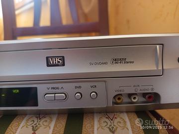 Lettore combinato Samsung SV-DVD440, che integra un lettore DVD/CD e un videoregistratore VHS. Vintage mai usato e perfettamente funzionante.