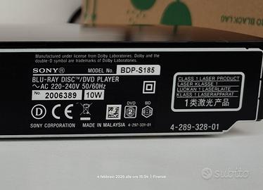 vendo per inutilizzo lettore Sony bdp-s185 usato solo qualche volta quando me l'hanno regalato. praticamente come nuovo