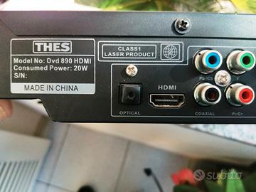 Vendo lettore DVD/CD THES perfettamente funzionante; mai aperto, tagliando di garanzia integro. Usato pochissimo. E' provvisto di tutte le uscite audio/video utilizzabili al momento su qualunque apparato audio-visivo - prezzo (€. 30,00) - Ribasso: €. 27,00 - Spedisco