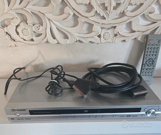 lettore DVD Pioneer DV-393 colore silver , un modello molto popolare per la sua affidabilità e il design sottile. Pioneer DV-393. Oltre ai DVD, legge CD musicali e file MP3/WMA. È un lettore "multiformato" solido. PhotoViewer: Il logo sulla parte frontale indica che puoi inserire un CD con foto in formato JPEG per proiettare le tue immagini sulla TV.in ottime condizioni con telecomando originale
