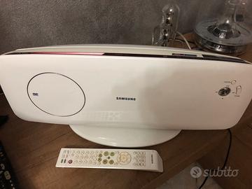 Come da foto Home Theater della Samsung compreso dicasse centrale e due piccoli altoparlanti Può collegare con l’impianto stereo Casa bellissimo