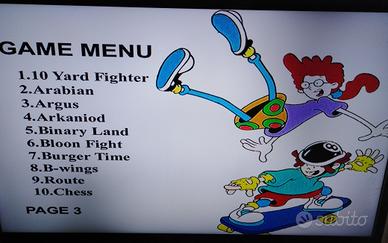 Lettore DVD Dicra, con funzione console videogiochi. 30 pagine con 30 giochi l'una. Anni 80/90. Consegna a mano. Non spedisco.