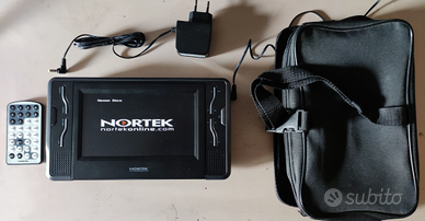 Lettore DVD usb sd card Nortek PDVX3000 7" completo di borsa, telecomando, alimentatore 220v, cavo audio video. Anche per auto, con alimentatore 9v opzionale.