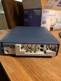 In condizioni perfette, ancora con la sua scatola e imballo originale, è un lettore DVD/CD SONY di livello top, unico con brevetto per stare sia in orizzontale che in verticale (ie tipo libro); oltre che funzionare perfettamente, è un oggetto di arredo e design unico nel suo genere. Completo di cavi, alimentatore e manuali di istruzioni in diverse lingue, compreso Italiano. Si può collegare anche a Smart TV con dei semplici adattatori di presa scart/hdmi.