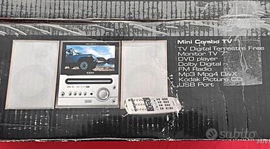 Lettore DVD e TV completo di casse acustiche separate. Impianto funzionante a corrente, con telecomando e istruzioni nella scatola originale CDV. Per altre info chiedere.