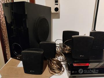 impianto 5.1 lg con lettore dvd/mp3 e dvx funzionante con segni del tempo ma sprovvisto di telecomando. ritiro solo a mano in zona.