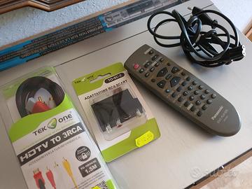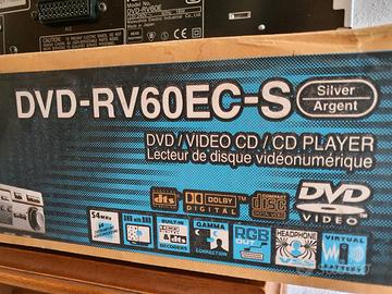 Lettore DVD PANASONIC, mod. RV60EC-S, con integrato Decoder Dolby Digital e Dts. Compreso di telecomando, cavo HDMI-RCA, adattatore RCA SCART, imballo originale. Dettagli tecnici: - Built-in Dolby Digital/ Dts decoder - 54 Mhz video processing - DNR with BNR - gamma correction - RGB out - headphone VSS - virtual battery