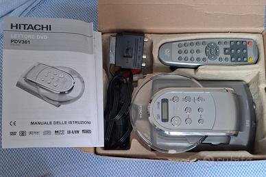 Lettore DVD portatile Hitachi PDV-301, compatto e facile da trasportare. manca l'alimentatore da 9v - Supporta formati disco: DVD Video, DVD+RW, DVD+R, DVD-RW, DVD-R, VCD, SVCD, CD-DA, CD-R/RW, MP3-CD. - Compatibile con JPEG/KODAK PICTURE CD. - Convertitore Video D/A 10 Bit/27 MHz. - Convertitore Audio D/A 24 Bit/96kHz. - Doppio laser. - DOLBY DIGITAL. - Menu multilingua su schermo. - Interfaccia utente grafica. - Spegnimento automatico. - Include adattatore AC, telecomando multifunzione, cavi Audio/Video e adattatore Scart.