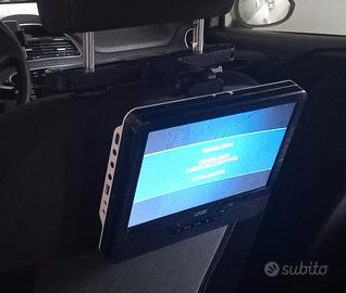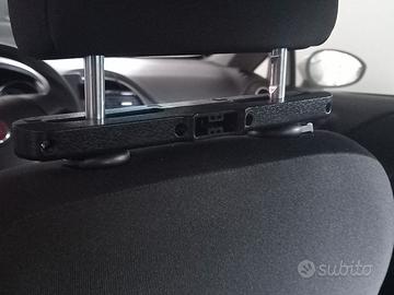 Progettato per auto, con apposita morsa da agganciare ai ferri del poggiatesta e staffa orientabile a sgancio rapido.