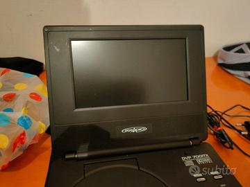 Lettore DVD usato pochissimo con la funzione anche della TV . Con telecomando , antenna TV , caricatore per la corrente e anche adattatore per l'accendi sigaro dell'auto. Si può usare in auto e ovunque si vuole molto comodo e tascabile