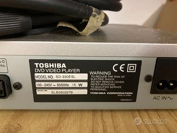 DVD VIDEO PLAYER TOSHIBA Modello SD 330ESL compresi cavi SCART e telecomando.