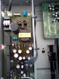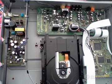 Tenuto inattivo per svariati anni per motivi personali come gli altri apparati hi-fi in mio possesso ho voluto verificare il suo funionamento ma me lo aspettavo che la verifica sarebbe stata negativa. L'ho aperto per controllo visivo di polvere o qualche condensatore esploso, ma per quello che ne capisco non ho visto nulla di anormale. Il lettore si accende, il carrello fuoriesce e rientra senza problemi ma mettendo un disco audio o video mi esce la scritta NO DISC e non c'è ragione che funzioni. Sicuramente il problema e di alimentazione ( prima foto ) condensatore scarico o un diodo bruciato. L'ho tenuto acceso per diverse ore per causa di condensa; nulla. Quindi mi sono deciso di cederlo come non funzionante qualcuno ne capisce di elettronica e vuole sistemarlo? è un signor apparato con telecomando anche se ha i suoi anni. Lo cedo per € 30 (trenta) con ritiro a mano o tramite ritiro di un corriere zona provincia di Brindisi.