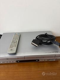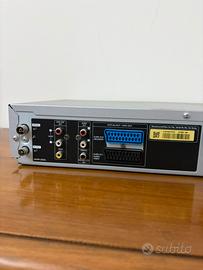 Vendo lettore combo DVD e videocassette VHS marca LG, modello VC9800, colore argento. Dispositivo ideale per: •vedere vecchie videocassette VHS •rivedere DVD •collegarlo a dispositivi esterni per convertire VHS in digitale Caratteristiche: •Lettore DVD integrato •Videoregistratore VHS 6 testine Hi-Fi stereo •Ingressi frontali audio/video (RCA) •Facile da utilizzare Condizioni: buone condizioni estetiche come da foto. ⚠️ Nota: il dispositivo non effettua conversione digitale diretta. Eventuali dispositivi esterni necessari per la conversione non sono inclusi.