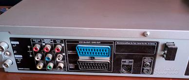 Philips DVP721VR/00 Il Philips DVP721VR/00 è un combinato DVD + VHS prodotto nei primi anni 2000, molto diffuso in Europa per la sua capacità di leggere DVD, CD e cassette VHS in un unico apparecchio. È noto per la buona affidabilità meccanica e per la compatibilità con diversi formati video. Le informazioni tecniche e i manuali completi sono disponibili in più fonti online Tipo: Lettore DVD + Videoregistratore VHS (Combo) Formati supportati: DVD-Video, CD, VCD, SVCD, VHS (PAL) Funzioni VHS: 6 testine Hi-Fi Stereo Registrazione e riproduzione Funzioni DVD: Riproduzione DVD-Video Supporto CD-R/CD-RW Connessioni: SCART Uscite audio/video composito Ingresso frontale AV (per registrare da videocamere) Telecomando dedicato incluso (modello specifico Philips) presente Il Philips DVP721VR/00 è pienamente compatibile con le TV moderne, anche quelle recenti 4K/8K, ma richiede un adattatore SCART → HDMI, perché l’uscita video del lettore è analogica. Le informazioni tecniche confermano che il modello dispone solo di uscite SCART e AV composito Peso circa 4kg è stato commercializzato tra il 2003 e il 2004 con un prezzo di lancio Euro 325.00