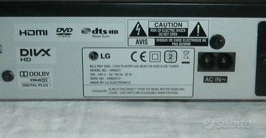 lettore LG HR825T dvd blu ray , con hard disk 500 gb interno integrato per registrazione programmi , decoder digitale terrestre , collegamento HDMI