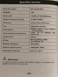 Vendo Lettore MP3 Player/Recorder with FM Radio AKAI modello MP-5401GB MAI USATO.