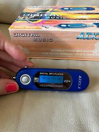 Microlettore MP3 digitale con registrazione voce e display LCD.