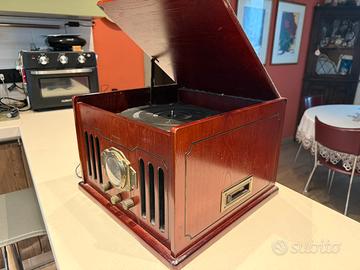 Lettore multimediale della marca Majestic con possibilità di riprodurre radio, mp3 (tramite usb), cassette, vinili e cd (lettore cd non funzionante)