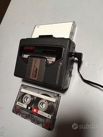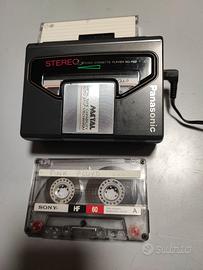 Lettore musicassette Panasonic, metà degli anni 80, ingresso DC in, regolazione del volume, selezione del nastro, uscita cuffie, completamente funzionante, funziona con 2 pile AA, con cuffie mancanti dell' imbottitura.
