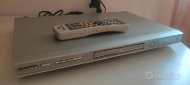 Lettore DVD perfettamente funzionante. Modello slim. Presenta delle piccole macchie sul piano superiore come in foto. Telecomando compreso Marca: Majestic Colore: grigio