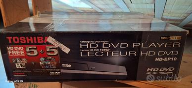 Vendo LETTORE TOSHIBA HD-DVD Mod. HD EP10 perfettamente funzionante. Nonostante il formato HD DVD non sia piu' supportato, rimane sempre un fantastico lettore con risoluzione FULL HD 1080p. Permette l 'upscaling a 1080p dei normali DVD. Riproduce ,inoltre, anche i DVD-R ,CD, CD-R. Sono presenti il telecomando e la scatola originali. Usato pochissimo, non presenta nessun graffio. Per altre informazioni o foto non esitate a chiedere.