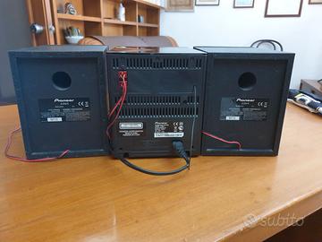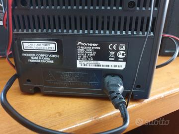 Lettore radio CD Pioneer X-EM 11, 10 w + 10 w RMS Cd/Usb, funzionante nella parte radio, anche in quella CD ma si sente un leggero fruscio di sottofondo. Mancano il telecomando e alcuni altri accessori ( presenti solo il corpo centrale e le due casse, come da foto ).