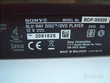 Decoder BDP-S6500 completo di Adattatore CA (AC-M 1208WW) e Cavo di alimentazione CA, Telecomando, Pile R03 (non fornite), manuale d’istruzione multilingue, compreso italiano