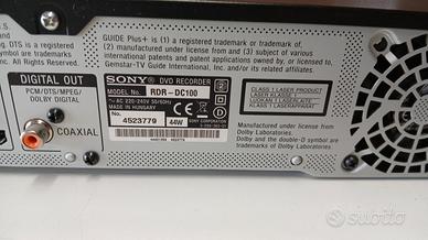 Lettore Sony Dvd recorder HDD mod. RDR-DC100 160GB di memoria interna (difettoso). La parte dell'HDD funziona perfettamente, registra e riproduce regolamente. La parte dvd non funziona e non masterizza ed il sintonizzatore non funziona. Si può collegare una fonte esterna (tipo un decoder) tramite hdmi o scart per visualizzare i canali TV e registrarli nell'hard disk interno per poi riprodurli. Prodotto in buone condizioni estetiche. Manca telecomando ma si può programmarne uno compatibile (da richiedere in fase di acquisto). Prezzo 89 euro