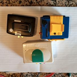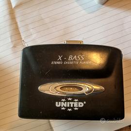 lettore portatile musicassette musica cassette audio stereo vintage nero United X-Bass , verde bianco Bontempi e giallo blu Trekking mulino bianco walkman