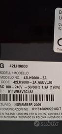 LG 42LH9000. Dimensioni diagonale schermo: 106,7 cm (42"), Risoluzione del display: 1920 x 1080 Pixel, Tipologia HD: Full HD, Tecnologia display: LCD, Luminosità schermo: 500 cd/m², Tempo di risposta: 2,3 ms, Rapporto d'aspetto nativo: 16:9. Colore del prodotto: Nero