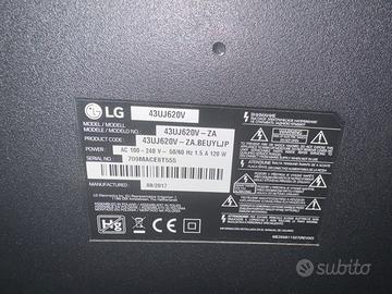 Vendo TV LG 43” Smart TV 4K Ultra HD, perfettamente funzionante e in ottime condizioni. Schermo 43 pollici LED Risoluzione 4K Ultra HD Smart TV con Wi-Fi integrato App Netflix, YouTube, Prime Video 3 HDMI + 2 USB Telecomando incluso TV ideale per film, serie TV, streaming e console. Vendo per passaggio a televisore più grande. Contattare solo se realmente interessati. No perditempo