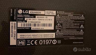 Dimensioni schermo: 109,2 cm (43"), Tipologia HD: 4K Ultra HD, Risoluzione: 3840 x 2160 Pixels. Tipo sintonizzatore: Analog & Digital, Formato del segnale digitale: DVB-C, DVB-S2, DVB-T2. Sistema operativo incluso: Web OS, Versione sistema operativo: 3.0. Potenza in uscita (RMS): 20 W, Formato audio integrato: DTS. Formati video supportati: H.265
