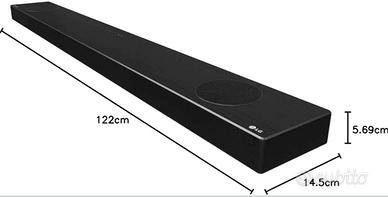 Vendo un sistema home cinema LG cosí composto; - LG SP9YA Soundbar 520W 5.1.2 Canali Meridian con Subwoofer Wireless, Bluetooth, Tecnologia DTS:X, Dolby Atmos, Dolby Digital, Audio Alta Risoluzione, AI Sound Pro, USB, HDMI in/out; - LG SPK8-S altoparlanti 140W 2.0 canali con relativi piedistalli marca VEBOS. Usato ma in ottime condizioni, minimi graffi ma completamente funzionante. Vendo per cambio casa. No scatola.