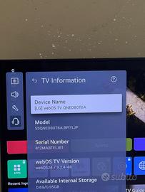 Vendo LG QNED 55QNED80T6A in condizioni pari al nuovo, usato pochissimo e perfettamente funzionante.