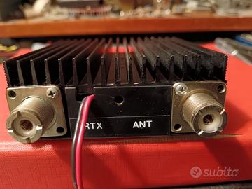 PWR IN: 1-8 W. PWR OUT: con 5 W input, eroga 30 W in AM e 50 W in SSB.