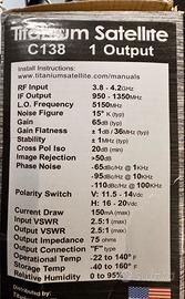 Lnb titanium c138 con filtro per il 5G usato solo per pochi test. Completo di viti, dielettrico cono per antenne primo fuoco e per offset. Includo anche supporto per installazione su parabola offset. Prezzo non trattabile