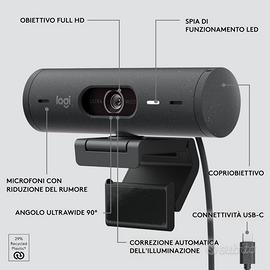 Logitech Brio 500 Webcam Full HD Correzione Luce, Show Mode, Microfono Riduzione del Rumore, Copertura Privacy, Streaming, Funziona con Microsoft Teams, Google Meet, Zoom, Cavo USB-C - Grafite
