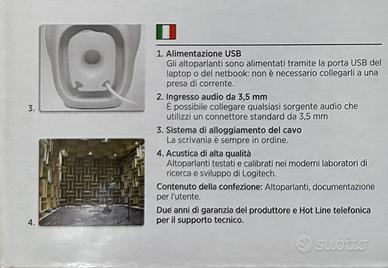 Vendo Logitech Stereo speakers z120 per Pc e/o Smartphone funzionante e in buone condizioni. Alimentazione: USB Collegamento a dispositivo: connettore jack ⚠️ Non incluso nell’articolo: alimentatore e smartphone (foto ad uso dimostrativo)
