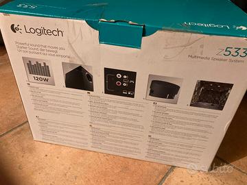 Sistema audio Logitech Z533 perfettamente funzionante, ideale per chi cerca bassi potenti e un suono cristallino in ogni situazione: musica, film o gaming. Composto da 2 satelliti, subwoofer e controllo cablato