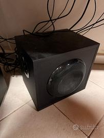 Il sistema include due casse satelliti, subwoofer e tutti i cavi necessari per il collegamento.