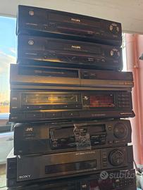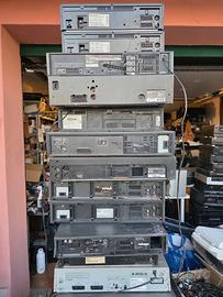Vendo in blocco 13 videoregistratori VHS di marche e modelli diversi: Philips Hi-Fi Stereo x2 (Turbo Drive, ShowView) Sony SLV-E7 (Hi-Fi Stereo, 4 testine) Panasonic NV-HD660 (Super Drive, Hi-Fi Stereo, Q-Link) Panasonic NV-HD636 (Super Drive, Hi-Fi) Panasonic NV-L28EI Grundig VS 410 (Made in West Germany) Grundig VS/MS 530 Hitachi Video Deck (anni '80) Hitachi M620E (Digital HQ) JVC HR-J456 (4 Head, T-V Link) Funai combo DVD/VCR (6 Head Stereo Hi-Fi) Un ulteriore VCR non presente in foto, privo di coperchio superiore Non sono stati testati, ma ne ho provati alcuni e si accendono. Vendo come rotti, per ricambi o riparazioni.