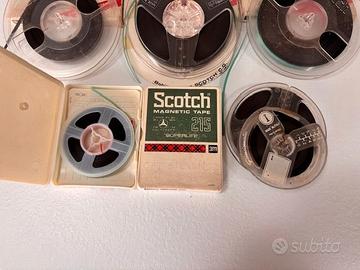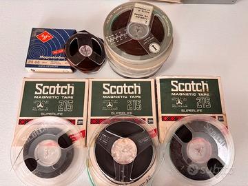 Lotto di 17 Nastri magnetici di varie marche e lunghezze, supporti per registrazione audio su bobina, ideali per appassionati di analogico, collezionisti o utilizzo su registratori vintage. I nastri sono usati e da sovrascrivere, ma ancora perfettamente utilizzabili per nuove registrazioni. Si tratta di materiale affidabile, con buona resa sonora. Vendita in lotti da 17 pezzi come di seguito dettagliato: N° 2 pezzi Scotch Superlife 90m N° 1 pezzo Geloso 90m N° 1 pezzo Scotch Superlife 135m N° 3 pezzi Scotch Superlife 270m N° 4 pezzi Scotch senza etichette, ma sembrano da 270m forse meno N°1 pezzo Geloso forse 270m N°1 pezzo AGFA 250m ? N° 1 pezzo AGFA 250m ? N° 3 pezzi Geloso 250m? Sulle dimensioni e la metratura effettiva dei nastri ho dovuto un po' ipotizzare in quanto non tutti i pezzi hanno targhette precise su cui attingere informazioni. Le foto in ogni caso raffigurano fedelmente la merce che sarà spedita.