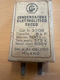 Vendo lotto di condensatori elettronici vintage provenienti da apparecchiature radio d’epoca. Nel lotto sono presenti: •condensatori Cornell Dubilier (USA) •condensatori Sangamo mica ad alta tensione •condensatori Geloso (Milano) •altri componenti simili Caratteristiche: •componenti originali anni ‘40–‘60 circa •varie capacità e tensioni (anche alta tensione) •ideali per restauro radio, collezione o esposizione Condizioni: •usati, come da foto •non testati ✔️ Lotto completo come in foto ✔️ Ottimo per appassionati di elettronica vintage Prezzo: 50 € trattabili