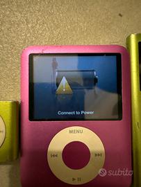 Lotto ipod Ipod nano 3g rosa 8gb all’accensione rimane bloccato sulla schermata iniziale Ipod nano verde 4gb funzionante solo in corrente batteria esausta Ipod shuffle 1gb
