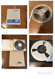 vendesi in blocco : 1) custodia e flangia originale Revox plastica attacco cine 27; 2) custodia generica cartone e flangia Ampex NAB 406 alluminio 27; 3) custodia generica e flangia Memorex alluminio NAB 27, nastro LPR 35; 4)custodia cartone BASF e flangia Ampex 456 alluminio NAB, nastro sconosciuto; 5) custodia Ampex cartone e flangia plastica 27 NAB, nastro sconosciuto; 6) custodia Ampex cartone e flangia alluminio Maxell 27 NAB, nastro sconosciuto; 7) 2 flange plastica 27 attacco cine; 8) 1 flangia plastica Scotch 27 attacco cine; 9) 2 nastri BASF Emtec nuovi 18 cm plastica; 10) 1 nastro BASF Emtec usato una volta 18 cm plastica; 11) 1 nastro Ampex 457 usato 18; 12) 1 nastro Scotch usato 18; 13) 2 nastri RAI in confezione originale, nuovi, 18; 14) 1 custodia originale BASF ferro super LH DPR 26 con flangia alluminio 27 BASF; 15) 1 custodia originale BASF con flangia alluminio originale Revox NAB 27 cm nastro LPR 35; 16) 1 custodia originale BASF con bobina NAB 27 nastro LPR 35 acquistato di recente e poco usato; Materiale in ottime condizioni. Ovviamente nessuna garanzia né restituzione. Costi di spedizione da concordare a parte.