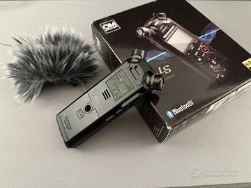 Registratore audio ad alta risoluzione (high-res) con sistema a 3 microfoni Tresmic II, bluetooth per controllo remoto, controllo direzionale, monitoraggio tramite cuffie e smartphone, memoria integrata 16 GB con espansione micro sd, usb2.0, possibilità di collergarlo a fotocamera/videocamera per registrare suoni o audio (ambientali, interviste..) anche di backup.