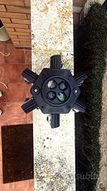La nostra luce stroboscopica per feste è dotata di 4 luci LED sul giradischi centrale e 6 LED su ciascuno dei 6 bracci luminosi. Dispone di un potente motore LED da 10PCS x 10W e genera un oscuramento digitale uniforme dallo 0 al 100% nonché effetti stroboscopici a velocità variabile.