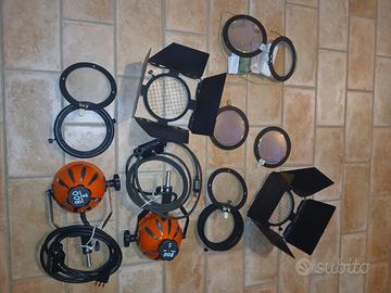 vendo 2 faretti varifocus da 800 w in ottime condizioni estetiche e funzionali, completi di 2 lampade - 2 perni - 2 paraluce a 4 alette - 2 porta filtri - 2 filtri dicroici in vetro - 2 vetri temperati di sicurezza --------- + in regalo: 1 filtro dicroico, 1 vetro di sicurezza e 6 lampade 800 w 220 v (prezzo non trattabile)