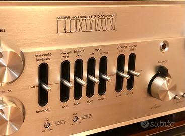 Fantastico preamplificatore stereo LUXMAN C-1000 IN CONDIZIONI FANTASTICHE PARI AL NUOVO. UNO DEI MIGLIORI PREAMPLIFICATORI AL MONDO. BASTI PENSARE CHE HA UNA DISTORSIONE TOTALE DI 0,007% su LINE TUNER E AUX e di 0,006% su PHONO e se paragonato al top di gamma di oggi LUXMAN CL-1000 che costa ben 24990 euro ed ha una distorsione di 0,016% …LO STRACCIA AMPIAMENTE!!! Funzionamento IN CLASSE A con stadi finali con Fet Darlington in configurazione push pull. Costruito con componenti selezionatissimi, incorpora una sezione multipla di alimentazione con condensatori pari a 60000 micro farad di filtraggio e sezioni di preamplificazione separate. Dotato di doppio stadio phono per giradischi….TRA I MIGLIORI MAI COSTRUITI. Uscita da 1 volt standard fino ad addirittura 13 volt massimi. PERFETTO, come appena uscito dalla fabbrica. OCCASIONE UNICA. No messaggi e mail. Lasciare numero telefonico.
