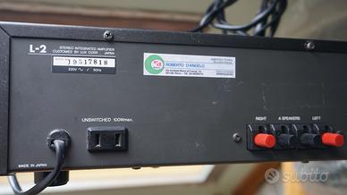 LUXMAN L2 robusto ed affidabile con i suoi 35W per canale su 8 Ohm loudness subsonico 5 ingressi di cui 1 fono pesa 8 kg. Ampli versatile dal suono puro come negli anni '80. Gli allacci sotto la pancia garantiscono il non accumulo di polvere e la precisione dei contatti, unico nel suo genere.